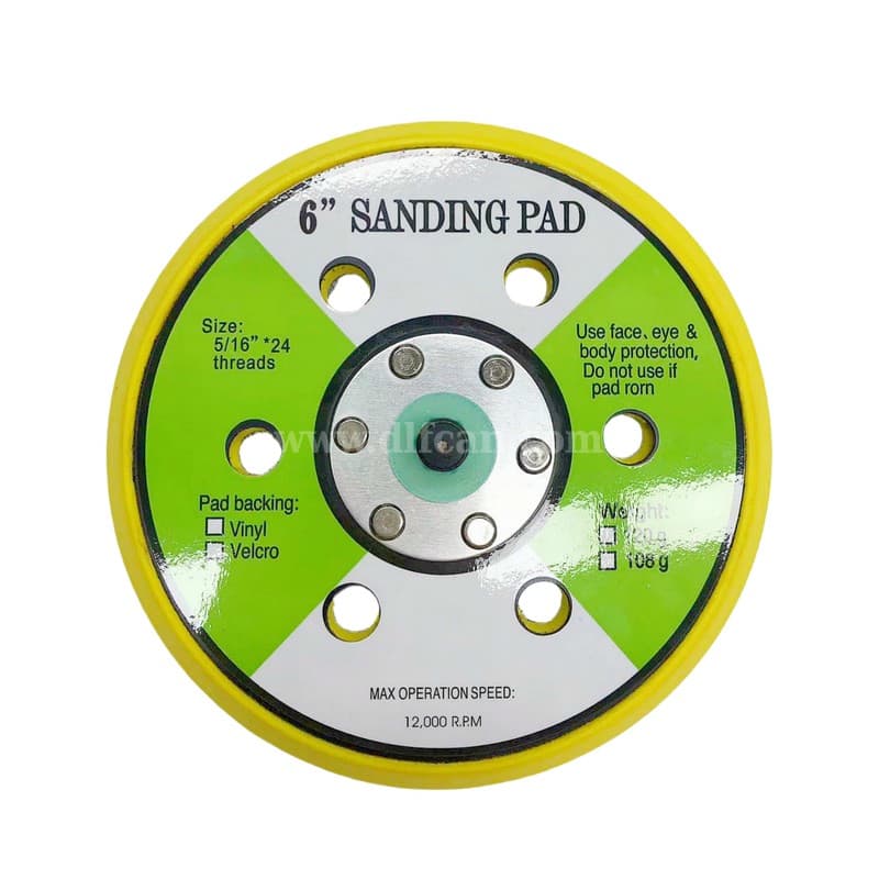 Professional 6-inch DA sander backing pad designed for high-performance automotive refinishing. Features a steel-reinforced polyurethane core for stability at high speeds, providing a reliable solution for distributors supplying professional body shops and industrial workshops.
