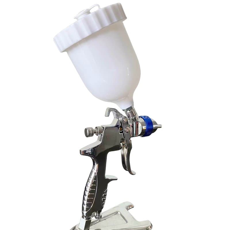 A high-performance HVLP gravity feed spray gun designed for professional automotive refinishing and industrial coating. This model ensures consistent surface finishes and high transfer efficiency for body shop distributors and paint supply wholesalers.